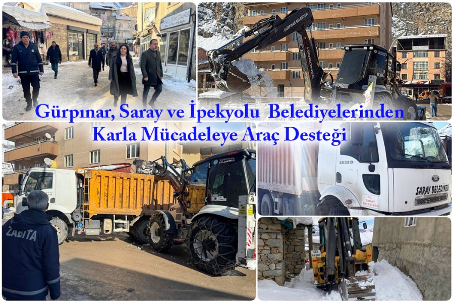 İlçemizde etkili olan yoğun kar yağışının ardından karla mücadele çalışmalarımız aralıksız devam etmektedir. Çalışmaların daha hızlı ve etkin yürütülmesi amacıyla Gürpınar ve İpekyolu Belediyelerinden kazıcı-yükleyici, Saray Belediyesi ise kamyon desteği sunmuştur.