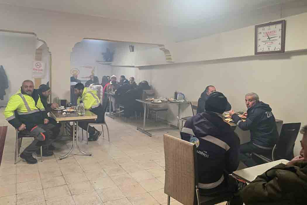 Çatak’ta etkili olan yoğun kar yağışı sürecinde gece gündüz demeden, 7/24 esasına göre büyük bir özveriyle görev yapan belediye personelimiz onuruna moral yemeği düzenlendi.