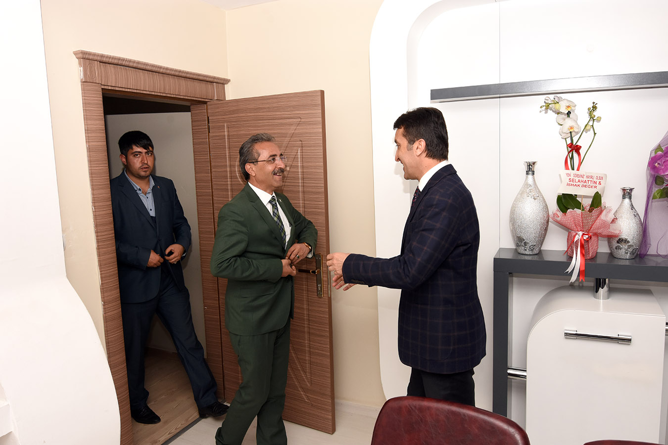 AK Parti İlçe Başkanı Tahsin Babur, Kadın Kolları Başkanı Yasemin Cebe, Gençlik Kolları Başkanı Emrullah Bozdemir ve ilçe teşkilatı, Belediye Başkanı Abdurrahman Şeylan’a hayırlı olsun ziyaretinde bulundu.